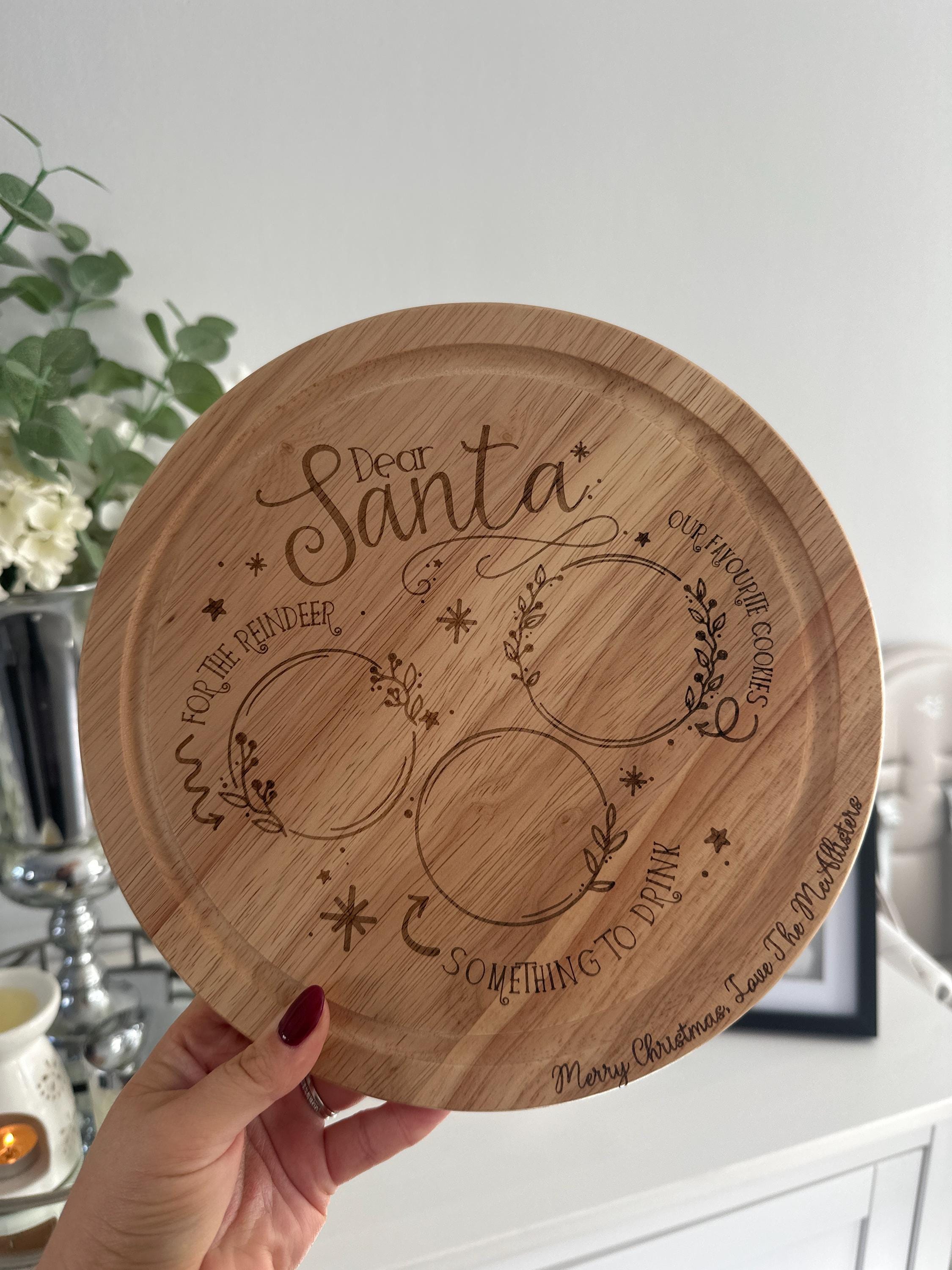 Engraved wooden Santa treat board for you to leave your treats for Father Christmas and his reindeer on Christmas eve.