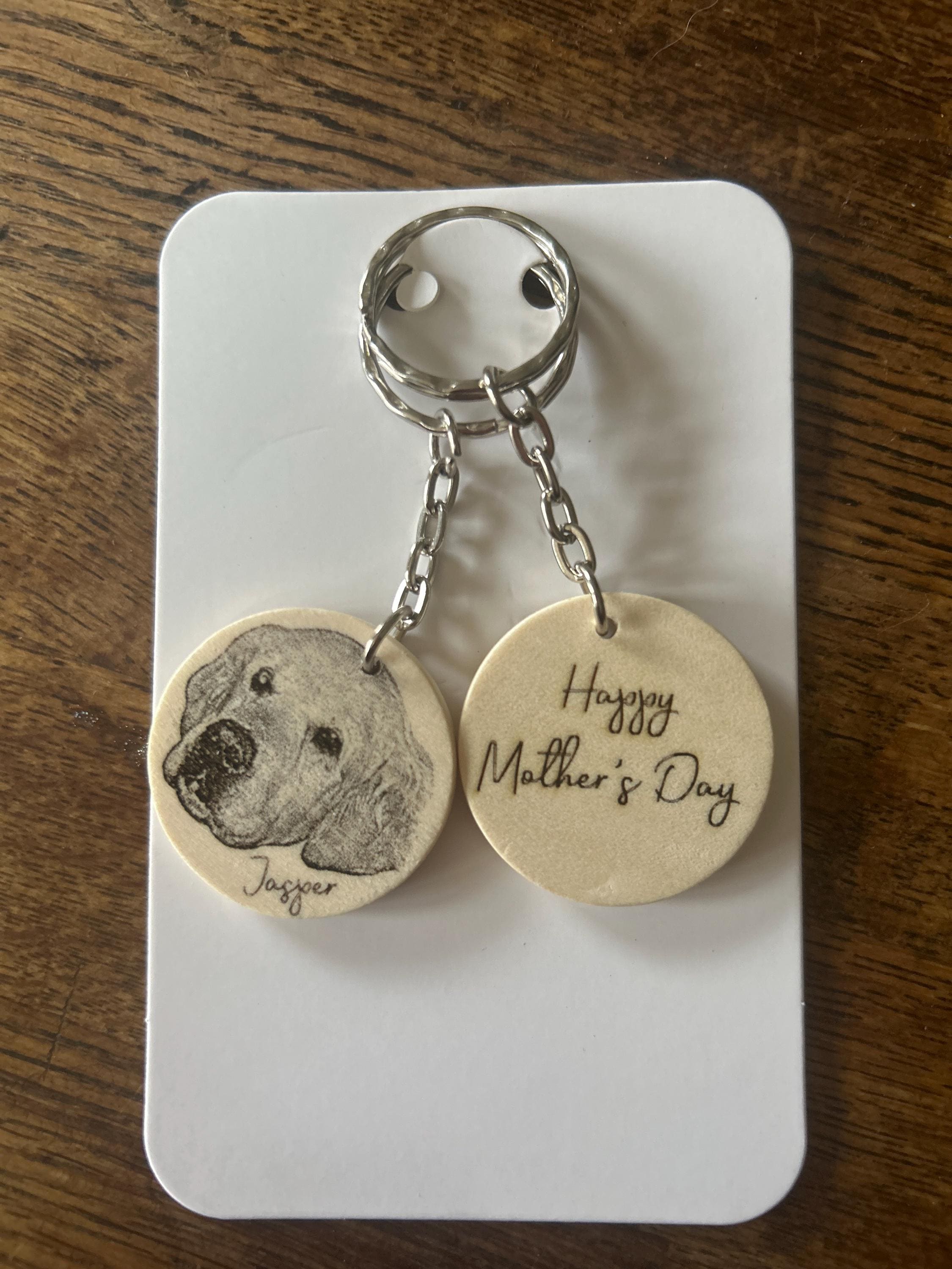 Engraved wood slice keyring with your chosen pet engraved onto the front. There is the option to add a name alongside the image of you animal if requested (as seen in example photos).