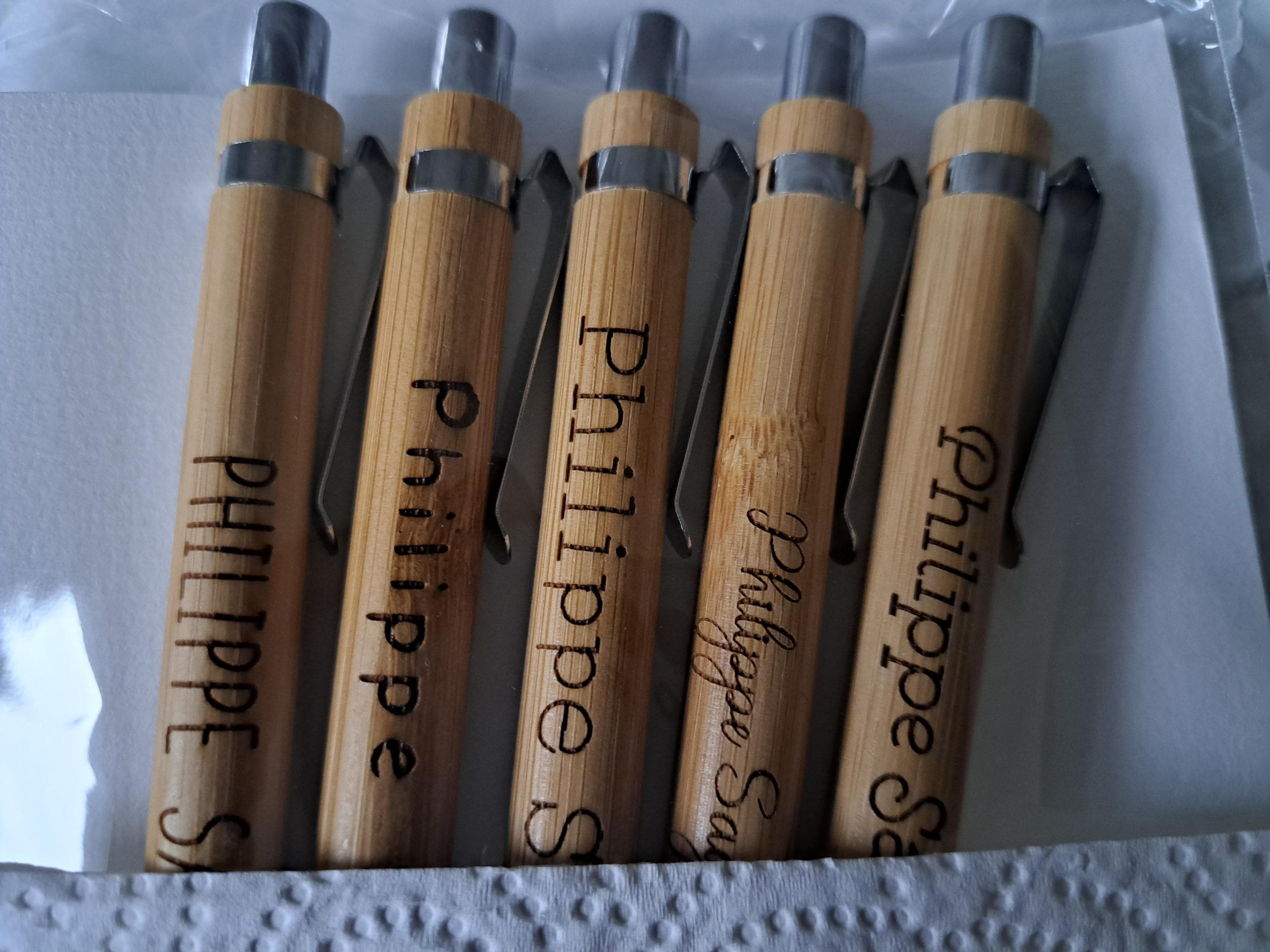 I love these pens so much, can hardly wait to give them to my son. I am ordering more for his brothers too. Hopefully, they won't lose them when they look like this.lol. Will probably get some for myself too. They are nice and light and make me feel eco too. lol.